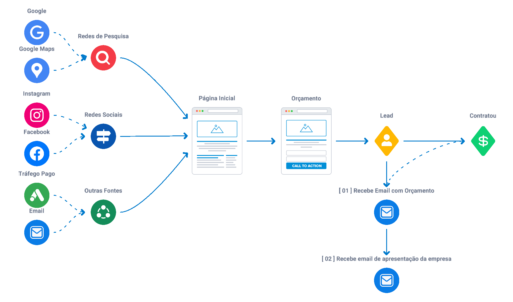 Através desta estrutura você oferece seus produtos e serviços ao mercado, de forma clara e direta.